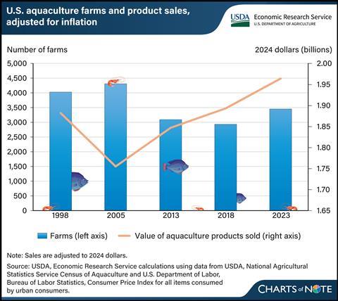 The census, collected by USDA, National Agricultural Statistics Service on the farmed production of food fish, crustaceans, molluscs, ornamental fish, sportfish, baitfish and other miscellaneous aquaculture indicates that the value of sales and number of aquaculture farms have risen since 2018.