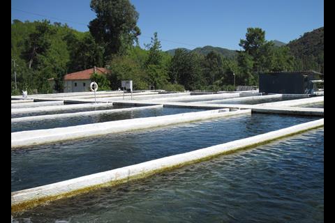 The facility at Köycegiz has 264 concrete runways where the fish are grown – there are around 15,000 fish in each runway – three million fish in total at the farm. The runways are fed by a spring 5km away from the farm, keeping the water temperature constant and enabling the fish to be produced all year round. The farm uses around 15,000 litres of water per second. When some of this water has been used it is recycled and used to generate electricity using a turbine and some is sold back to the national grid.