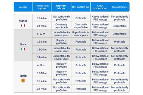 Only three types of bottom trawlers, two Spanish segments under 18 metres and Italian vessels between 12 to 18 metres, achieved net margins above the 10% threshold considered necessary for long-term viability.