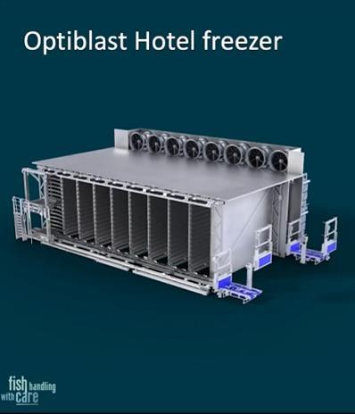 The Optiblast freezer was developed in response to increasing volumes of air-freighted produce. Its automated feeding system gives fast loading/unloading, meaning fish is frozen as quickly as possible whilst multiple trays and a lift system ensures each product is in the correct place.