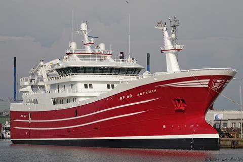 Artemis’ hull was built at the Karstensen Shipyard, Poland, and arrived in Skagen in February 2022 for outfitting. It headed straight for fishing grounds following delivery to make a start on herring.