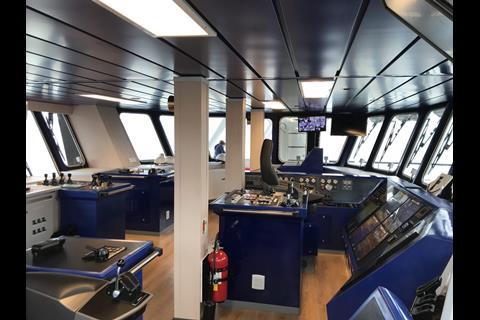Crab fishing is completed using a hydraulic hauler which is monitored from an offset helm position at the starboard side of the wheelhouse, with full depth windows positioned to offer a commanding view of both the hauling station and incoming line. The catch is released for sorting and then fed into two large 50,000 L refrigerated salt water tanks to keep the catch in prime condition.